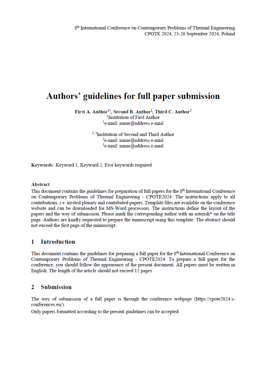 The manuscript should be prepared according to the template provided. Manuscripts will undergo technical review and may be rejected if they do not comply with the template.